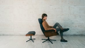 Leather Recliner with Footrest — ConformThe Time Out recliner combines the natural materials, comfort and ergonomics of Scandinavian design. It features an adjustable headrest and a swivel base equipped with a memory function. This armchair and matching standalone footrest have elegantly curved wooden frames that are lacquered to showcase the material’s natural beauty. It’s padded with cushions and upholstered in genuine leather, available in a range of shades.